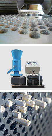 原料通過高溫,在壓輥和模盤的擠壓下,通過模盤上的孔,優(yōu)質成型的顆粒從出料斗滾動而出